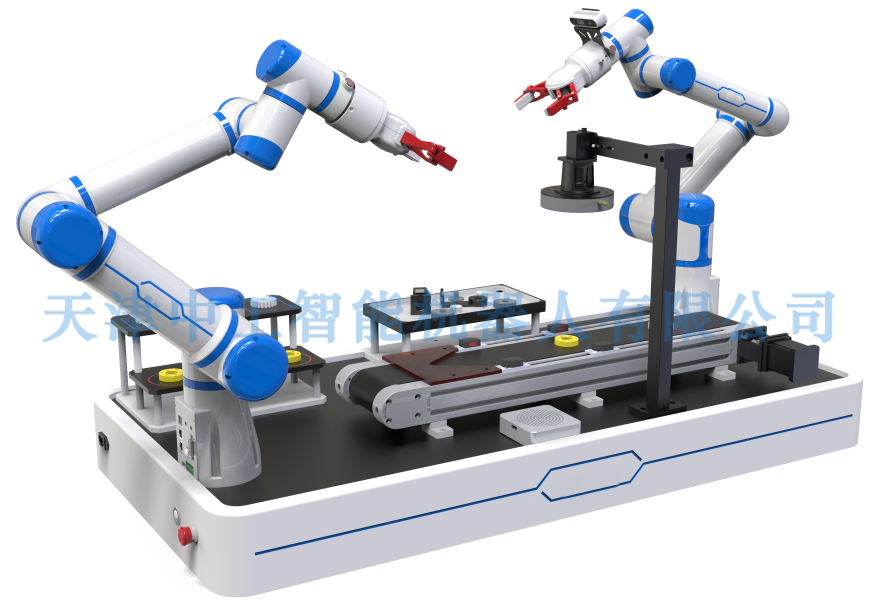 本产品采用两台协作机器人和两套视觉系统(1套2D视觉系统、1套深度视觉系统),面向自动化和智能制造领域的视觉定位、检测、分拣等实际应用,搭建典型的机器人+视觉自动分拣生产场景。在基础教学方面,生产线可以完成常规的数字图像处理、机器视觉、机器人运动控制、缺陷检测、目标识别等基础实验实训。在综合实践方面,前端的机器人和末端深度视觉系统,完成产品的定位和抓取;输送线侧的2D视觉系统进行产品的识别和检测;后端的机器人则完成产品的分拣和仓储。通过三个模块的协同,实现真实生产线上的工艺流程。