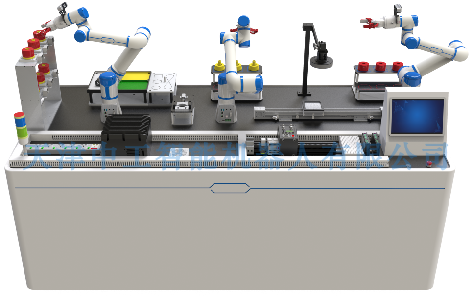 该生产线在功能设计上,既满足基础的机器人控制教学的需要,同时也满足智能制造方向的机器人视觉感知、电气控制、传感器控制,以及更高层次的大模型+机器人应用的需求。