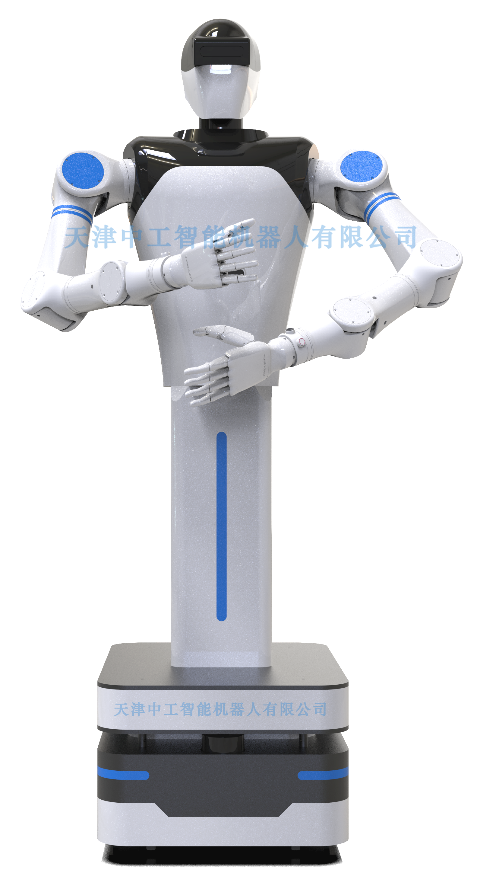 智能服务机器人融合了移动机器人的自主导航能力与七轴人形手臂的高度拟人化能力,可以面向服务场景开展丰富的应用。在结构上,采用中央运算单元进行推理与决策,并通过配备的深度视觉系统、麦克风阵列及激光雷达构成多模态环境感知网络,可以感知人体位置、距离、手势动作、声音特性等多种信息,从而实现与用户的高度自主交互。产品适用于展厅讲解、商超导览、校园接待等应用场景。