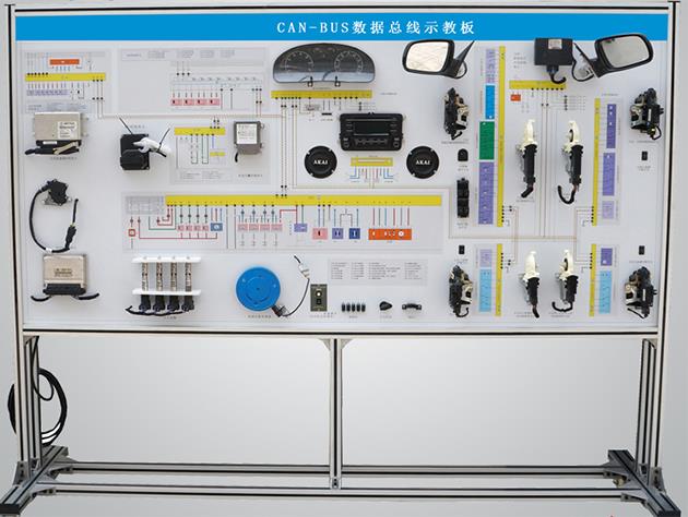 2.ZN-DQ2XNY型 新能源汽车车载网络实训台面板采用4mm厚耐腐蚀、耐创击、耐污染、防火、防潮的高级铝塑板,表面经特殊工艺喷涂底漆处理;面板打印有永不褪色的彩色电路图与工作原理示意图;学员可直观对照电动汽车整车CAN总线网络系统结构原理图和实物,认识和分析电动汽车整车CAN总线网络系统的工作原理。