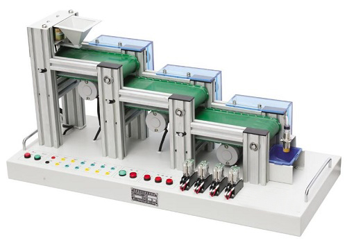 ZNPZ-SL01型自动送料装车实训模型能模拟实际的自动送料装车系统的工作状况,由漏斗上料装置、三级传送带、电磁铁、直流电机、电容传感器、故障开关、指示灯、模拟小车等组成,通过PLC编程,对电机、电磁铁进行较复杂的开关量控制、时序逻辑控制,完成自动上料过程。自动送料装车实训模型还设置了故障开关,可使学生掌握自动送料装车系统的操作及故障检测能力,是各类院校电气类专业进行实训的理想模型。