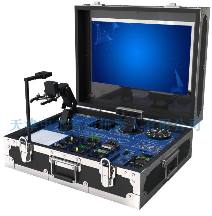 实验箱面向人工智能相关专业,集成了计算机视觉系统、语音处理系统、机械手臂、以及手势传感器、温湿度传感器、大气压传感器等多种嵌入式应用模块,通过搭建边缘计算终端,为人工智能专业相关的应用开发提供统一的通讯协议和接口。实验箱基于Linux操作系统,采用Python语言进行课程资源的开发,适用于人工智能专业8门以上课程的教学和实践。
