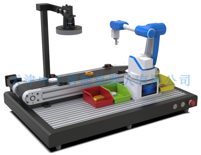2.生产线平台集成了机器人、视觉系统和多组传感器,采用一体化设计,整套系统可直接摆放于桌面上操作;